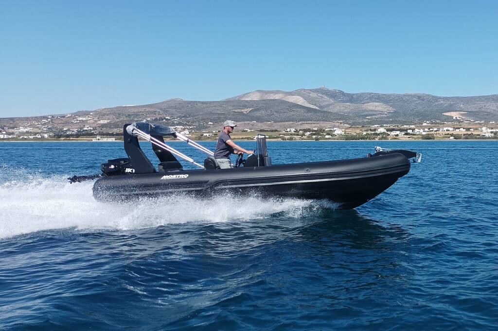 Rubber boat (R.I.B.) Mostro 621 Offshore Triton, built in 2022 is anchored in the Paros, Aliki, Cyclades, Greece. It has 0 cabins, can accommodate 0 people and has 0 toilets. Bed linen and kitchen equipment are included in the price.