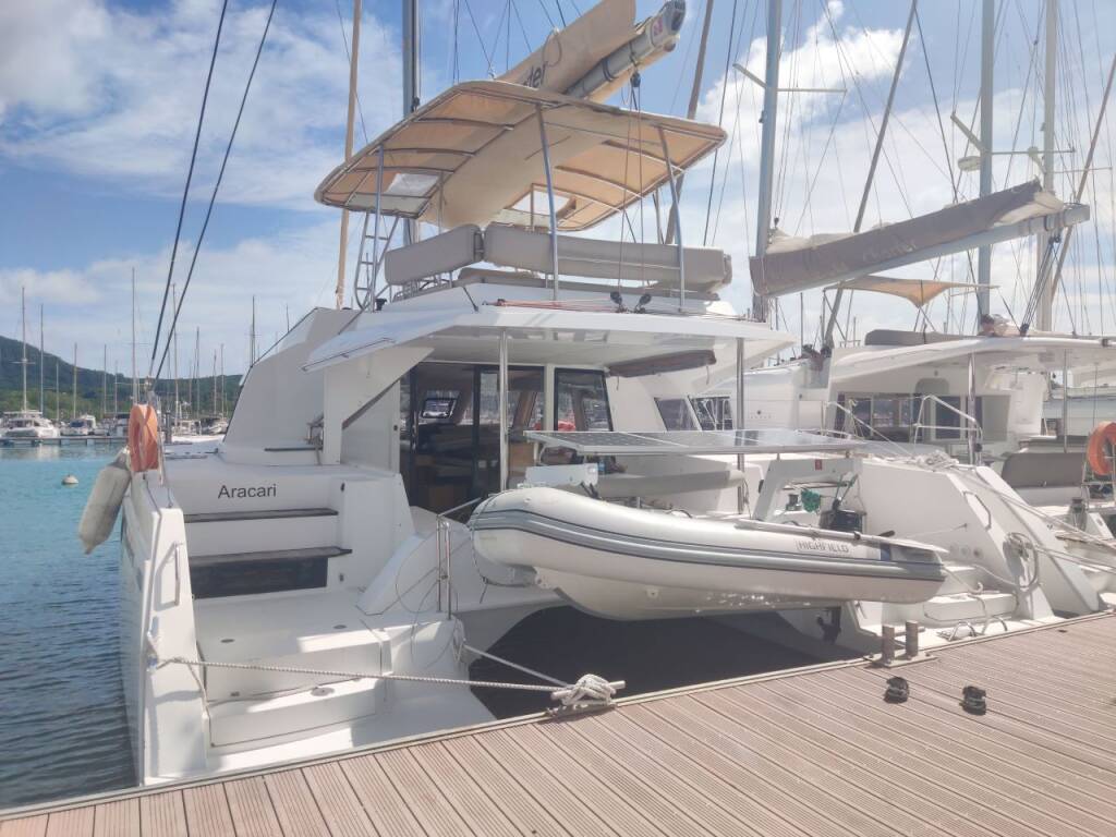 Catamaran Nautitech 46 ARACARI, built in 2019 is anchored in the Martinique, Le Marin, Martinique, Caribbean. It has 4 + 2 cabins, can accommodate 8 + 2 people and has 4 toilets. Bed linen and kitchen equipment are included in the price.