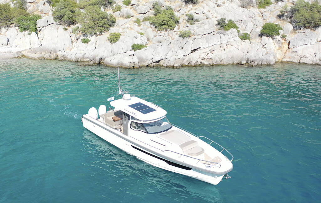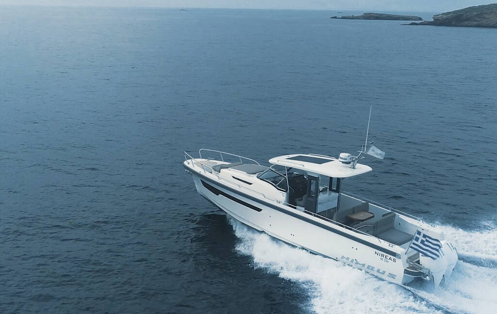 Motor boat Nimbus T11 Nireas, built in 2020 is anchored in the Athens, Agios Kosmas marina, Athens area/Saronic/Peloponese, Greece. It has 2 cabins, can accommodate 4 people and has 1 toilets. Bed linen and kitchen equipment are included in the price.