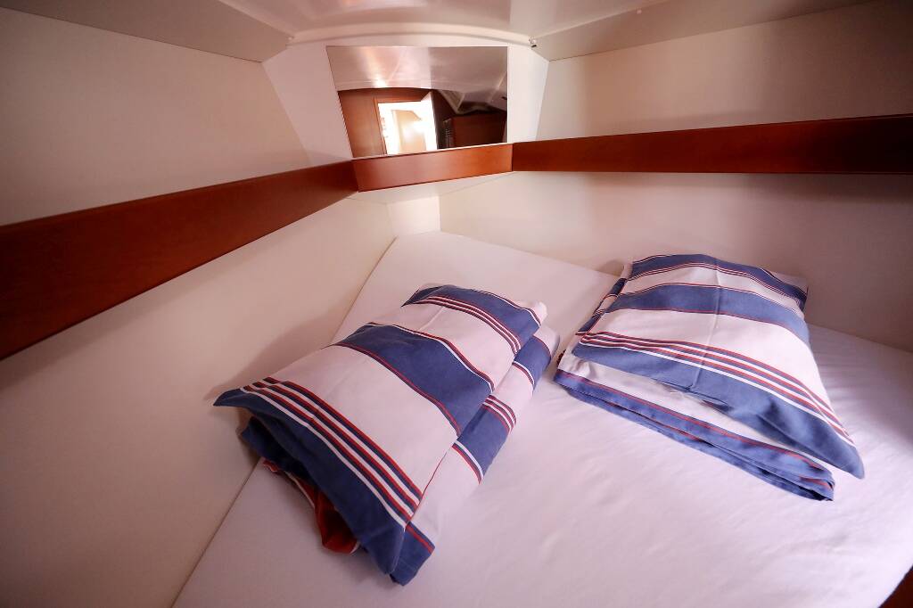 Sailing yacht Oceanis 34 Caprice, built in 2014 is anchored in the ACI Marina Vodice, Šibenik region, Croatia. It has 3 cabins, can accommodate 6 + 2 people and has 1 toilets. Bed linen and kitchen equipment are included in the price.
