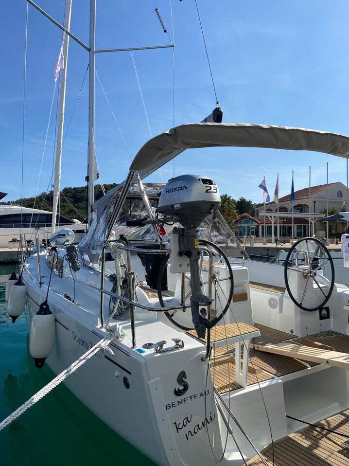 Sailing yacht Oceanis 34.1 Ka Nani, built in 2022 is anchored in the Marina Frapa, Rogoznica, Šibenik region, Croatia. It has 2 cabins, can accommodate 4 + 1 people and has 1 toilets. Bed linen and kitchen equipment are included in the price.