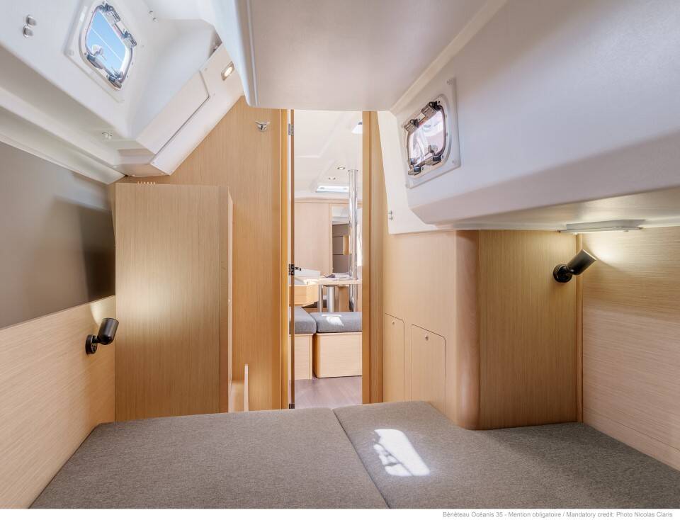 Sailing yacht Oceanis 35 Gaston, built in 2015 is anchored in the ACI Marina Split, Split region, Croatia. It has 3 cabins, can accommodate 6 + 2 people and has 1 toilets. Bed linen and kitchen equipment are included in the price.
