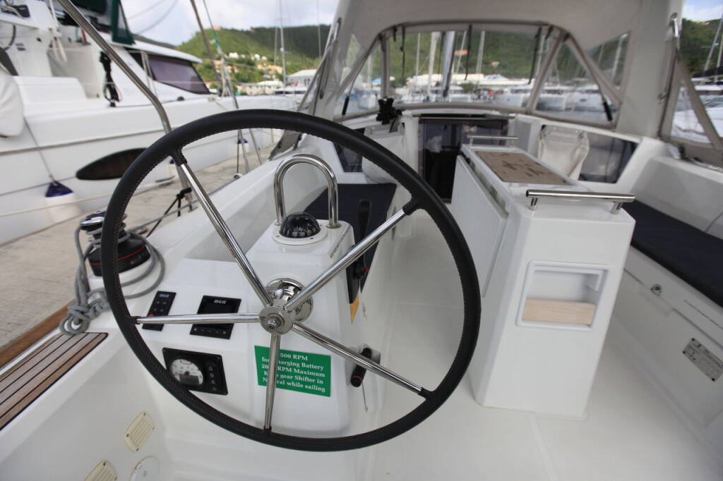 Sailing yacht Oceanis 35.1 Cozmo, built in 2018 is anchored in the BVI, Tortola, Ritter House Marina, British Virgin Islands, British Virgin Islands. It has 2 cabins, can accommodate 4 people and has 1 toilets. Bed linen and kitchen equipment are included in the price.