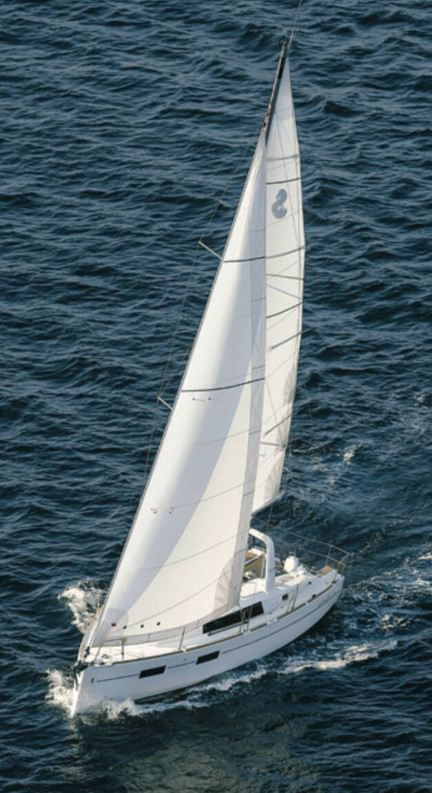 Sailing yacht Oceanis 38 Serafina, built in 2015 is anchored in the Kas Marina, Mediterranean, Turkey. It has 2 cabins, can accommodate 4 people and has 1 toilets. Bed linen and kitchen equipment are included in the price.