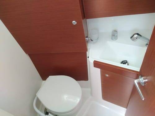 Sailing yacht Oceanis 38.1 Bordeaux, built in 2019 is anchored in the Trogir, Yachtclub Seget (Marina Baotić), Split region, Croatia. It has 3 cabins, can accommodate 6 + 2 people and has 2 toilets. Bed linen and kitchen equipment are included in the price.
