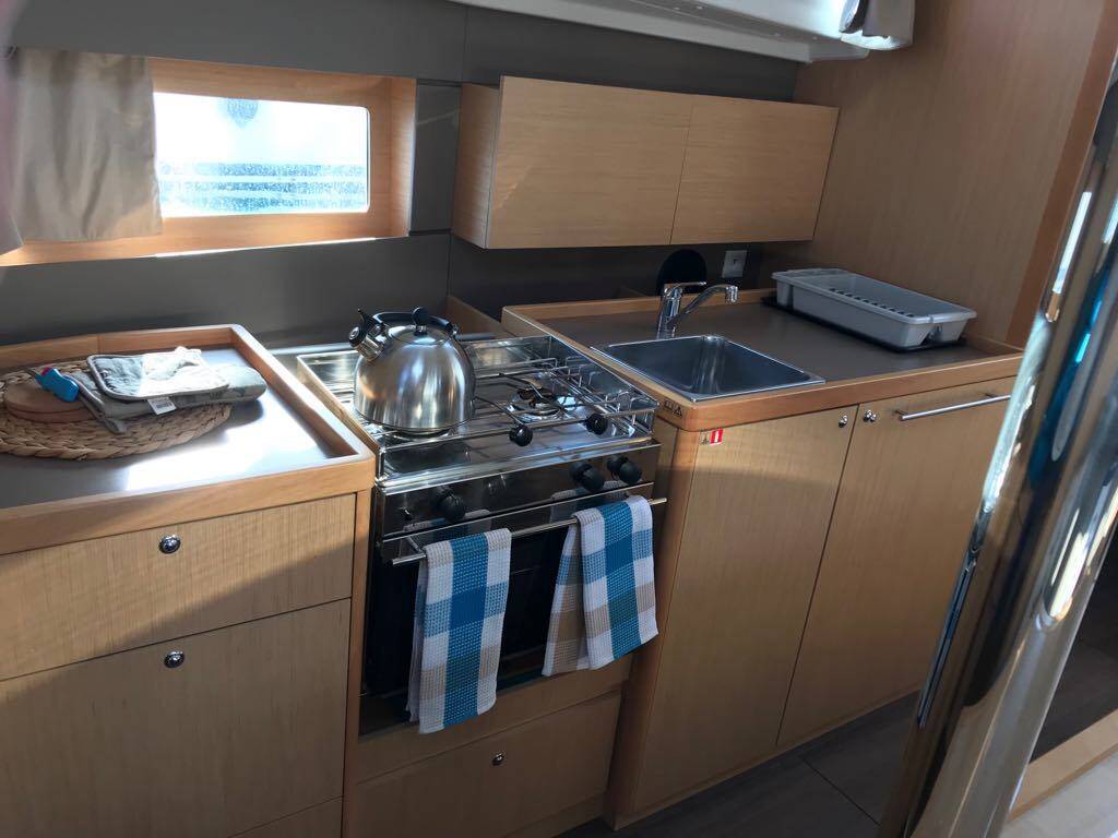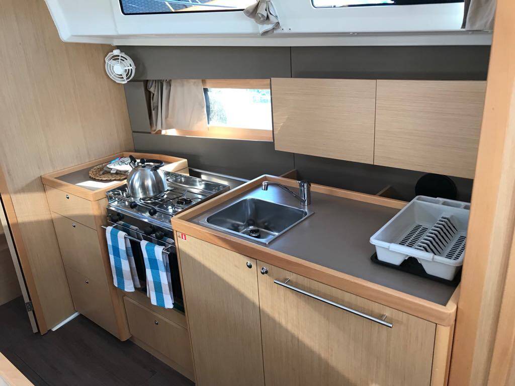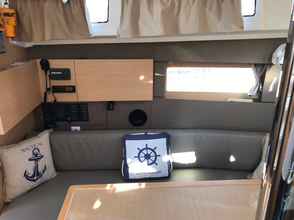 Sailing yacht Oceanis 38.1 Elisa, built in 2018 is anchored in the Lefkas, D-Marin, Ionian Islands, Greece. It has 3 cabins, can accommodate 6 + 2 people and has 2 toilets. Bed linen and kitchen equipment are included in the price.