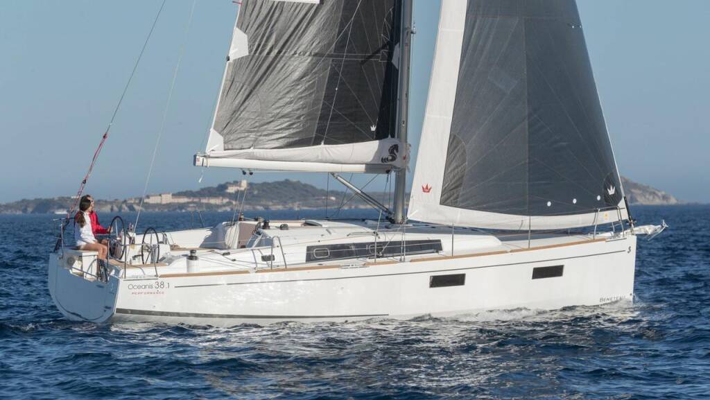 Sailing yacht Oceanis 38.1 Lukas, built in 2023 is anchored in the Marina Frapa, Rogoznica, Šibenik region, Croatia. It has 3 cabins, can accommodate 6 + 1 people and has 1 toilets. Bed linen and kitchen equipment are included in the price.