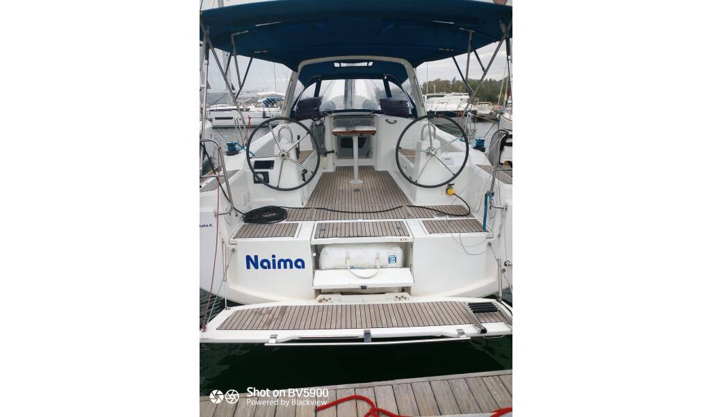Sailing yacht Oceanis 38.1 Naima, built in 2017 is anchored in the Sardinia, Cannigione, Sardinia, Italy. It has 3 cabins, can accommodate 6 + 2 people and has 2 toilets. Bed linen and kitchen equipment are included in the price.