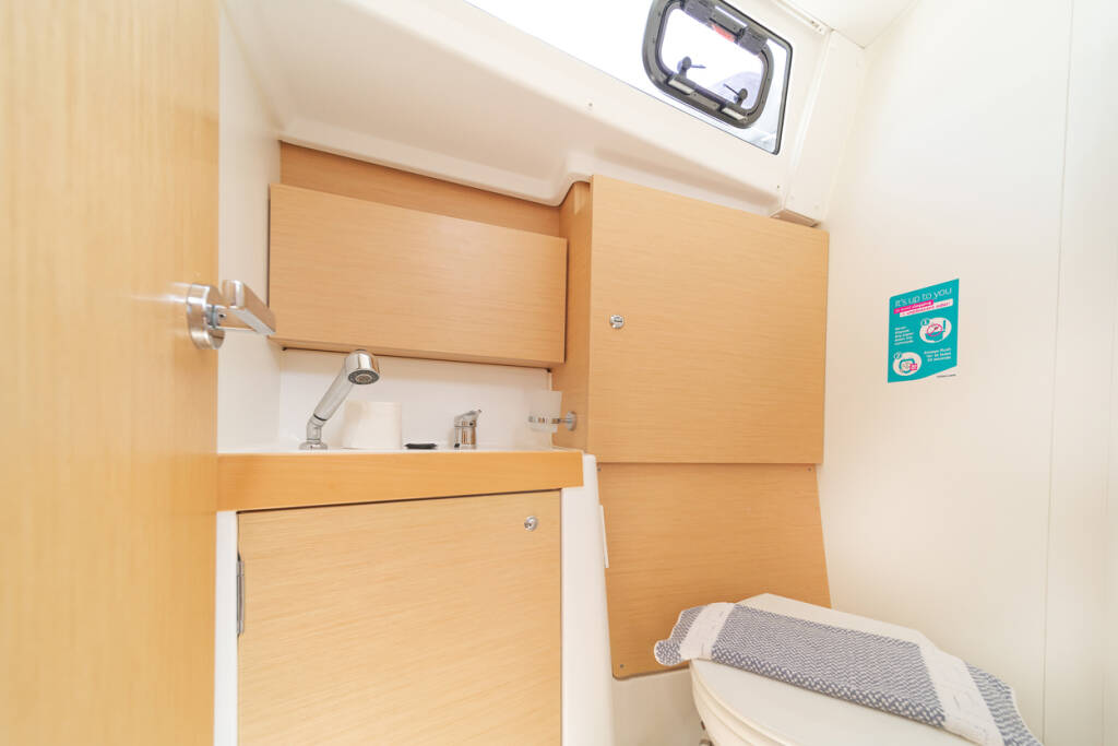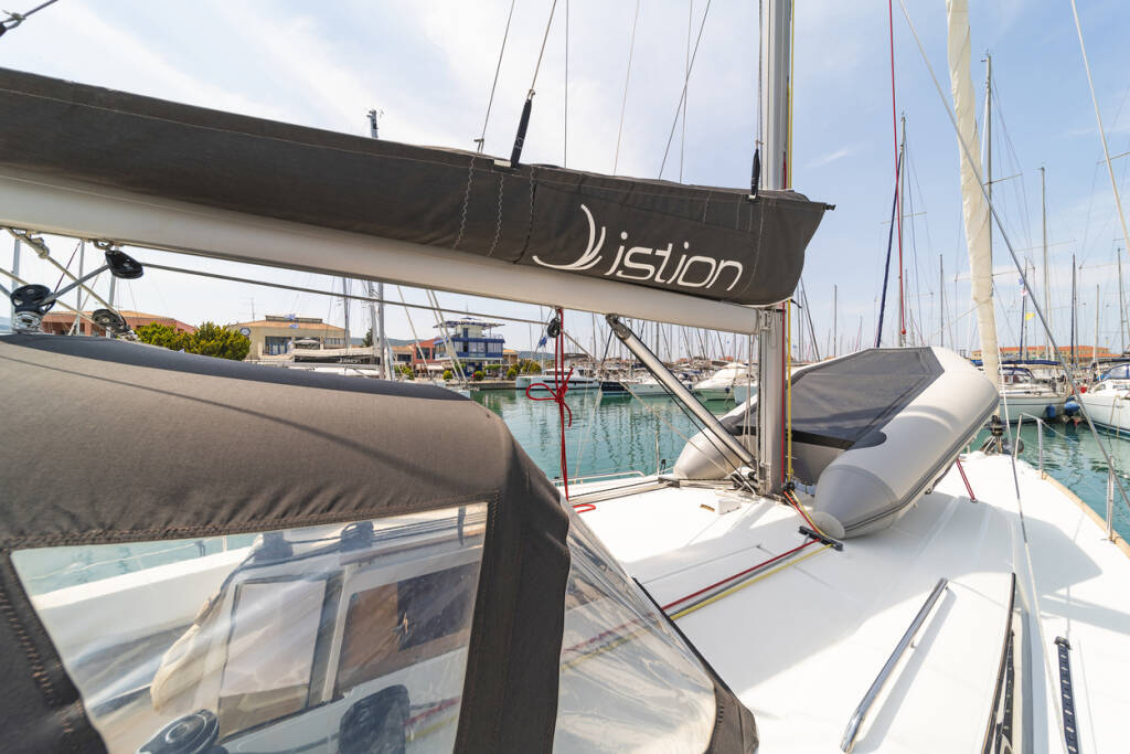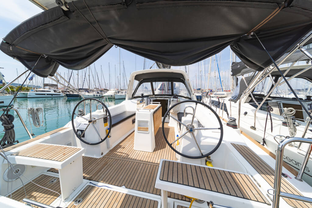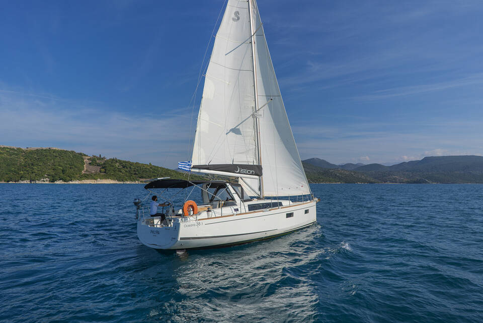 Sailing yacht Oceanis 38.1 Philyra, built in 2018 is anchored in the Lefkas, D-Marin, Ionian Islands, Greece. It has 3 cabins, can accommodate 6 + 2 people and has 2 toilets. Bed linen and kitchen equipment are included in the price.