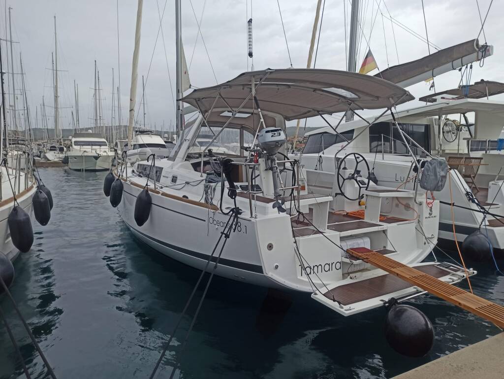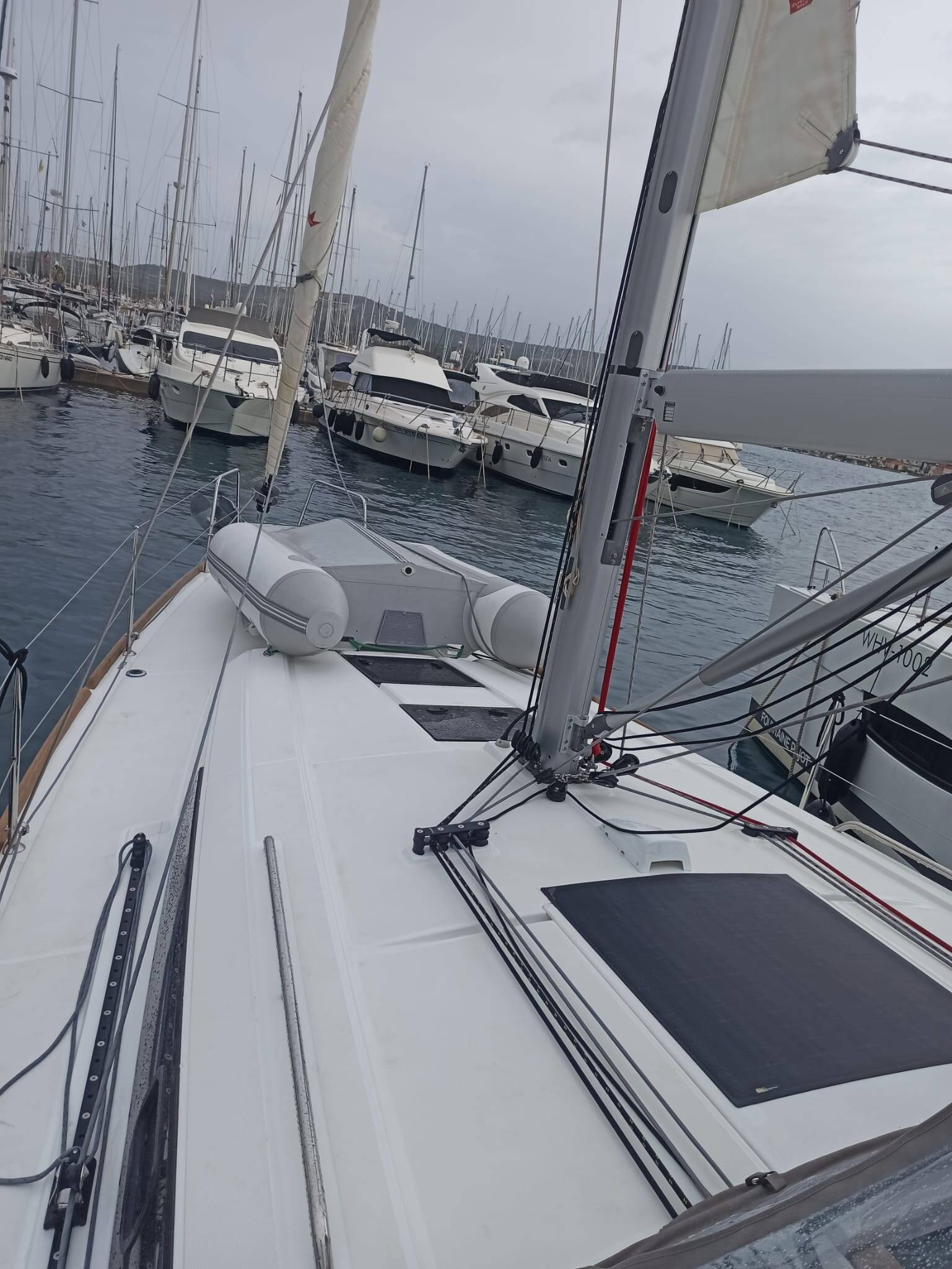 Sailing yacht Oceanis 38.1 Tamara, built in 2023 is anchored in the Marina Frapa, Rogoznica, Šibenik region, Croatia. It has 2 cabins, can accommodate 4 + 2 people and has 1 toilets. Bed linen and kitchen equipment are included in the price.
