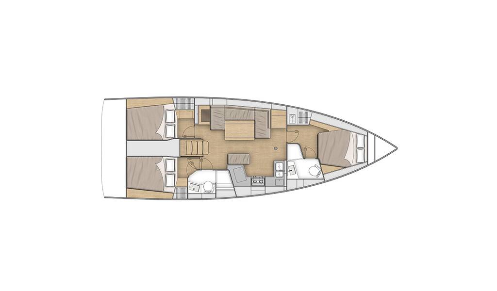 Sailing yacht Oceanis 40.1 Azorian, built in 2021 is anchored in the ACI Marina Split, Split region, Croatia. It has 3 cabins, can accommodate 6 + 2 people and has 2 toilets. Bed linen and kitchen equipment are included in the price.