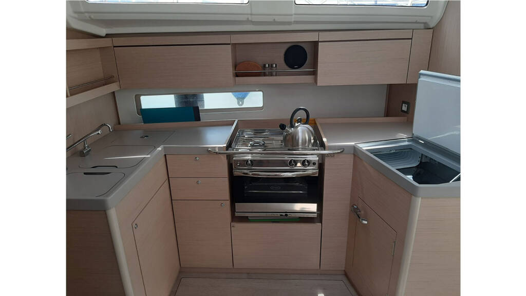 Sailing yacht Oceanis 40.1 Fots, built in 2021 is anchored in the Palairos, Ionian Islands, Greece. It has 4 cabins, can accommodate 8 + 2 people and has 2 toilets. Bed linen and kitchen equipment are included in the price.