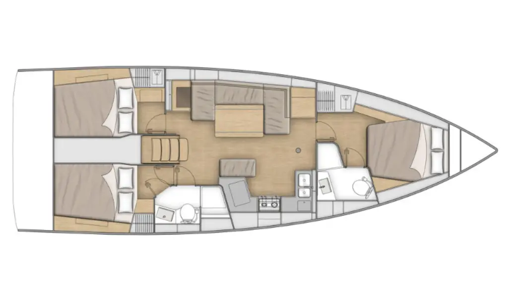 Sailing yacht Oceanis 40.1 Orion, built in 2023 is anchored in the Marina Zadar (ex. Tankerkomerc), Zadar region, Croatia. It has 3 cabins, can accommodate 6 + 2 people and has 2 toilets. Bed linen and kitchen equipment are included in the price.