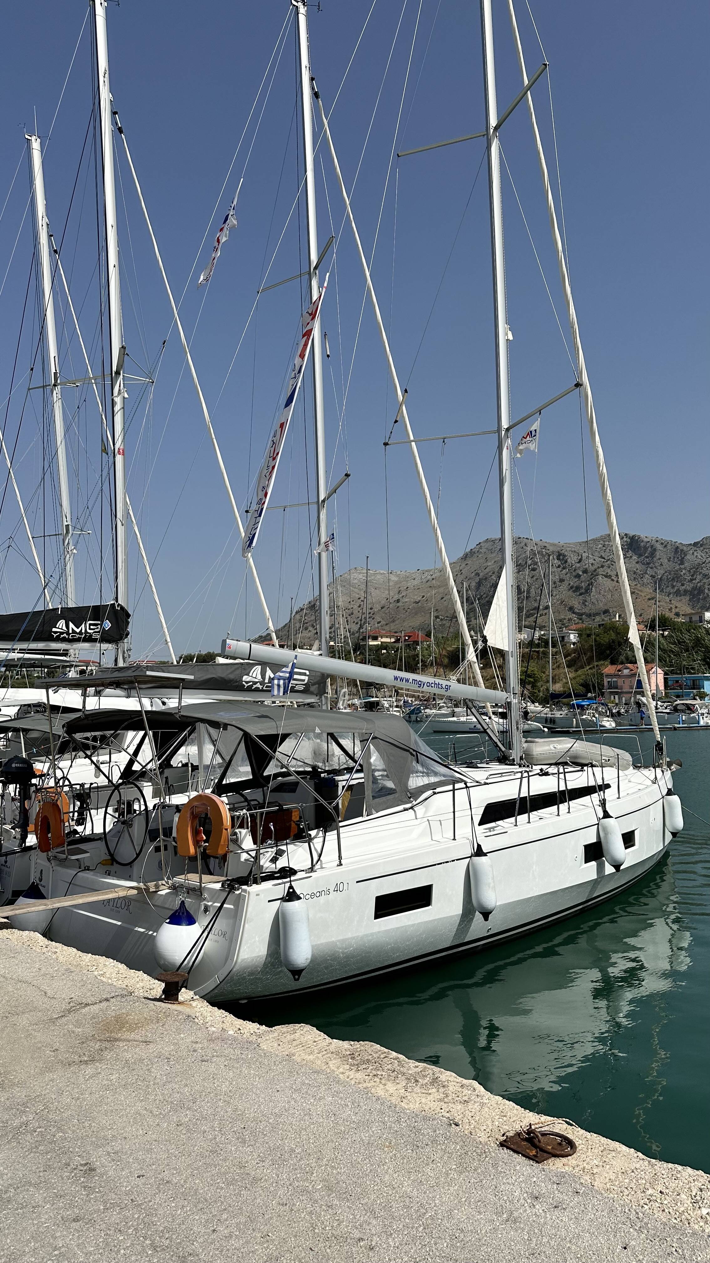 Sailing yacht Oceanis 40.1 Taylor, built in 2021 is anchored in the Lefkas, D-Marin, Ionian Islands, Greece. It has 4 cabins, can accommodate 8 + 2 people and has 2 toilets. Bed linen and kitchen equipment are included in the price.
