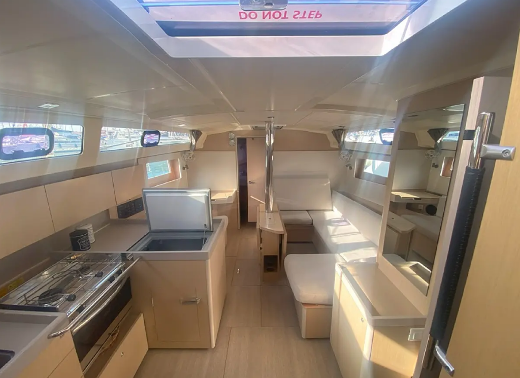 Sailing yacht Oceanis 41.1 Ioanna, built in 2020 is anchored in the Lefkas, D-Marin, Ionian Islands, Greece. It has 3 cabins, can accommodate 6 + 2 people and has 2 toilets. Bed linen and kitchen equipment are included in the price.