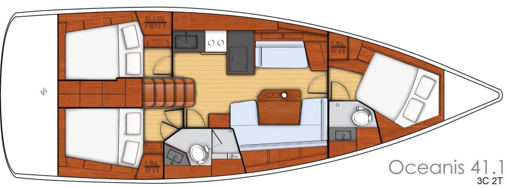 Sailing yacht Oceanis 41.1 Luxa, built in 2019 is anchored in the ACI Marina Split, Split region, Croatia. It has 3 cabins, can accommodate 6 + 2 people and has 2 toilets. Bed linen and kitchen equipment are included in the price.