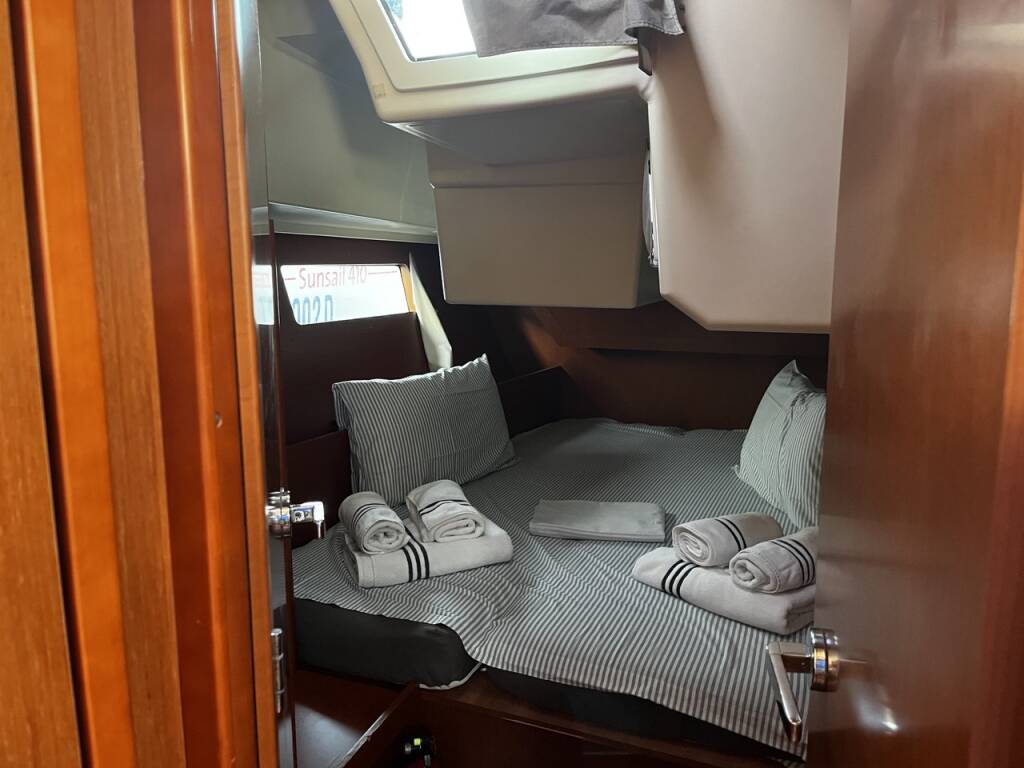 Sailing yacht Oceanis 41.1 Malika, built in 2017 is anchored in the Sardinia, Cannigione, Sardinia, Italy. It has 3 cabins, can accommodate 6 + 2 people and has 2 toilets. Bed linen and kitchen equipment are included in the price.