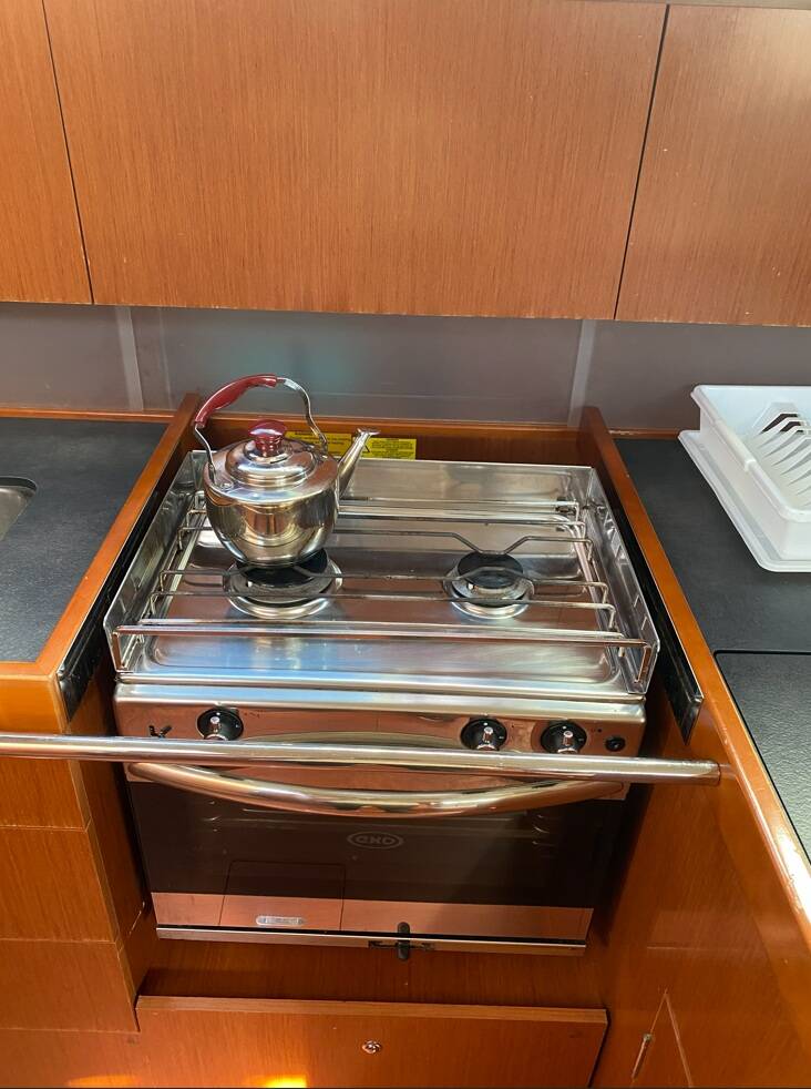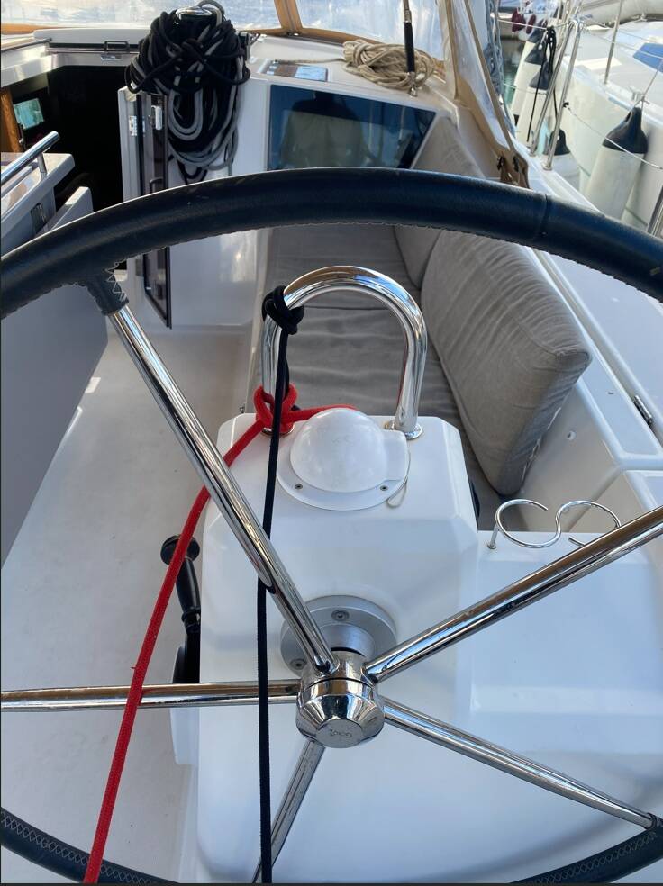 Sailing yacht Oceanis 41.1 Moorhen, built in 2019 is anchored in the Palairos, Ionian Islands, Greece. It has 3 cabins, can accommodate 6 people and has 2 toilets. Bed linen and kitchen equipment are included in the price.