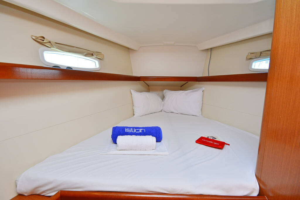 Sailing yacht Oceanis 43 Belamour, built in 2008 is anchored in the Kos, Kos Marina, Dodecanese, Greece. It has 4 cabins, can accommodate 10 people and has 2 toilets. Bed linen and kitchen equipment are included in the price.