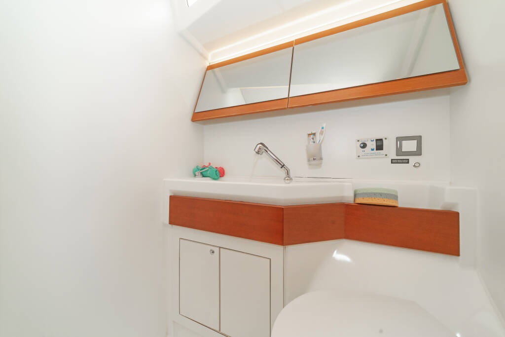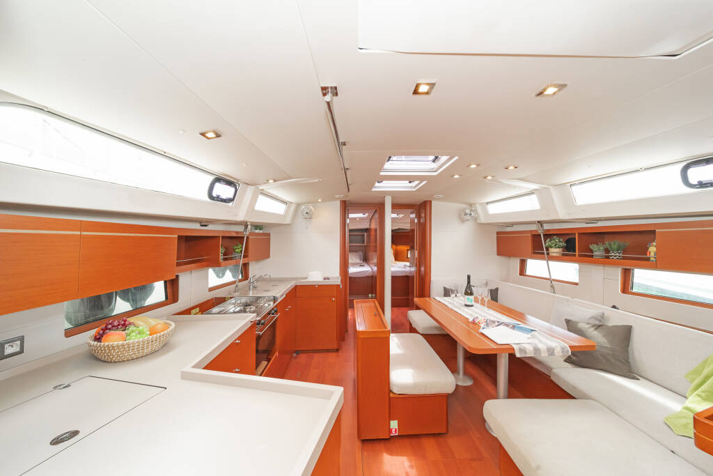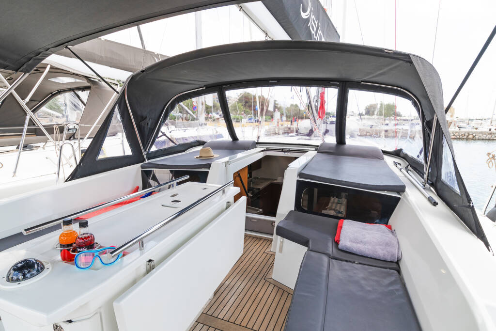 Sailing yacht Oceanis 46.1 Almyra, built in 2019 is anchored in the Athens, Alimos marina, Athens area/Saronic/Peloponese, Greece. It has 4 cabins, can accommodate 8 + 2 people and has 4 toilets. Bed linen and kitchen equipment are included in the price.
