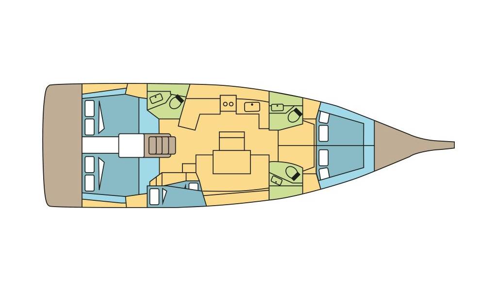 Sailing yacht Oceanis 46.1 ELLI K, built in 2023 is anchored in the Kos, Kos Marina, Dodecanese, Greece. It has 5 cabins, can accommodate 10 + 2 people and has 3 toilets. Bed linen and kitchen equipment are included in the price.