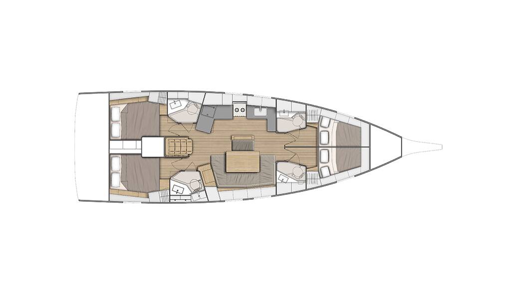 Sailing yacht Oceanis 46.1 Sail Delta, built in 2020 is anchored in the Orhaniye, Aegean, Turkey. It has 4 cabins, can accommodate 8 people and has 4 toilets. Bed linen and kitchen equipment are included in the price.