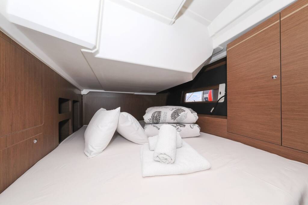 Sailing yacht Oceanis 46.1 Speechless, built in 2020 is anchored in the Marina Kornati, Biograd, Zadar region, Croatia. It has 5 cabins, can accommodate 10 + 2 people and has 3 toilets. Bed linen and kitchen equipment are included in the price.