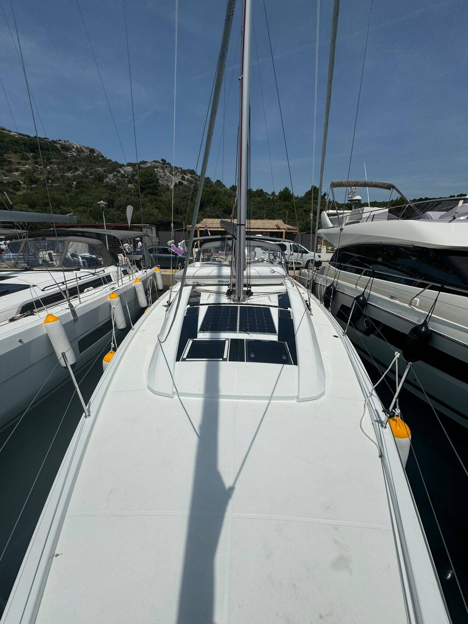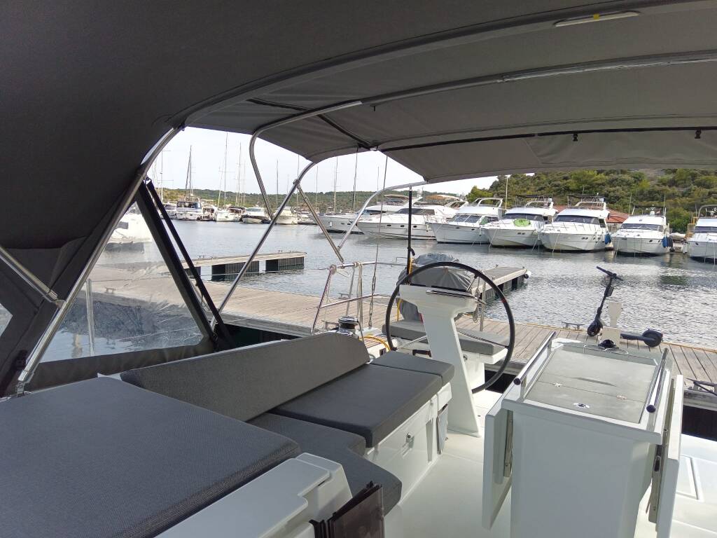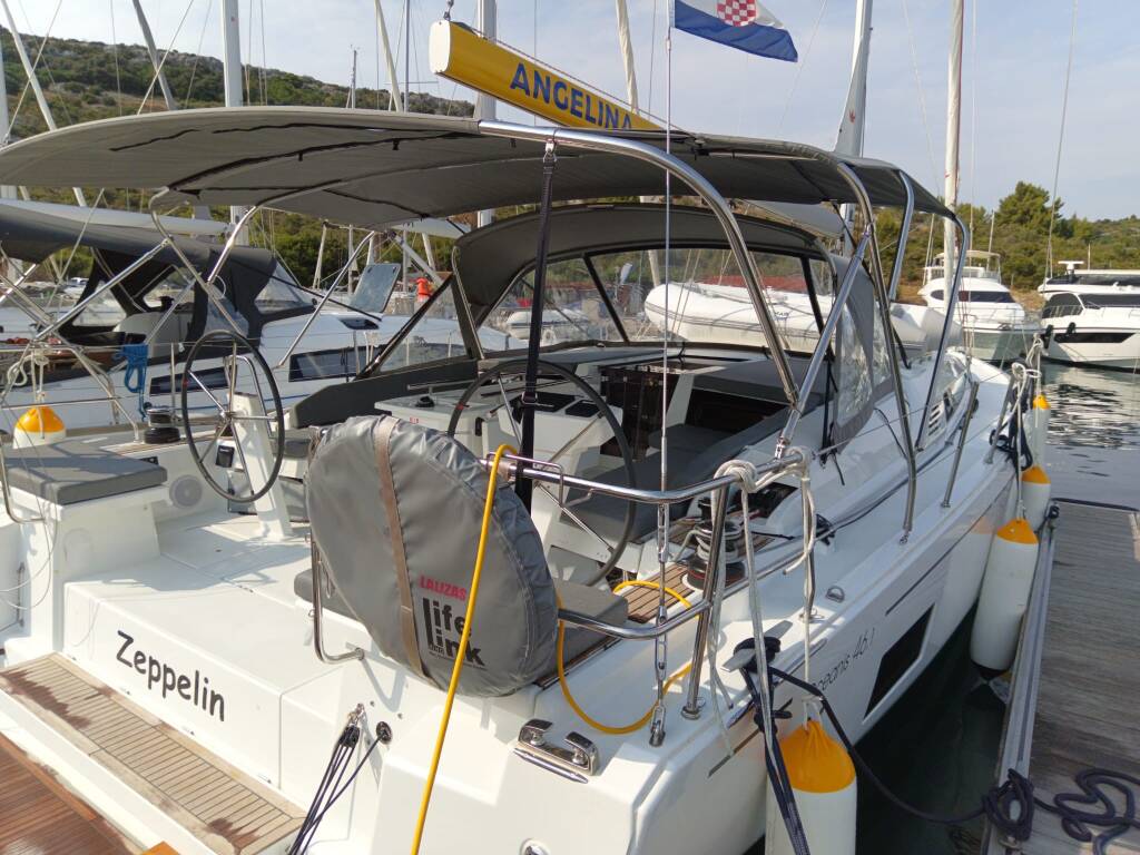 Sailing yacht Oceanis 46.1 Zeppelin, built in 2024 is anchored in the Marina Kremik, Primosten, Šibenik region, Croatia. It has 4 cabins, can accommodate 8 + 2 people and has 2 toilets. Bed linen and kitchen equipment are included in the price.