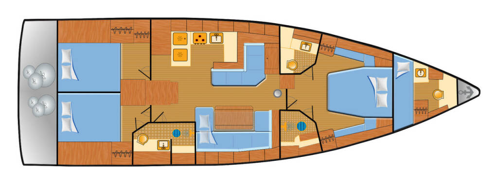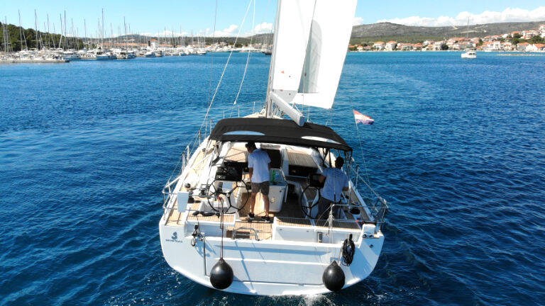 Sailing yacht Oceanis 51.1 Cloudy Bay, built in 2020 is anchored in the Marina Frapa, Rogoznica, Šibenik region, Croatia. It has 3 + 1 cabins, can accommodate 6 + 2 + 1 people and has 2 + 1 toilets. Bed linen and kitchen equipment are included in the price.