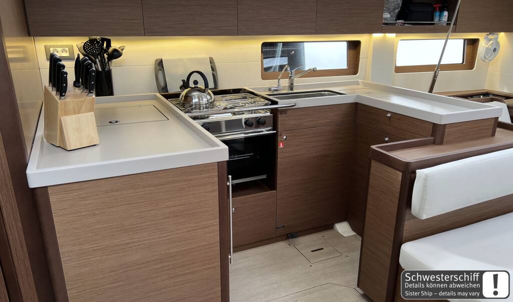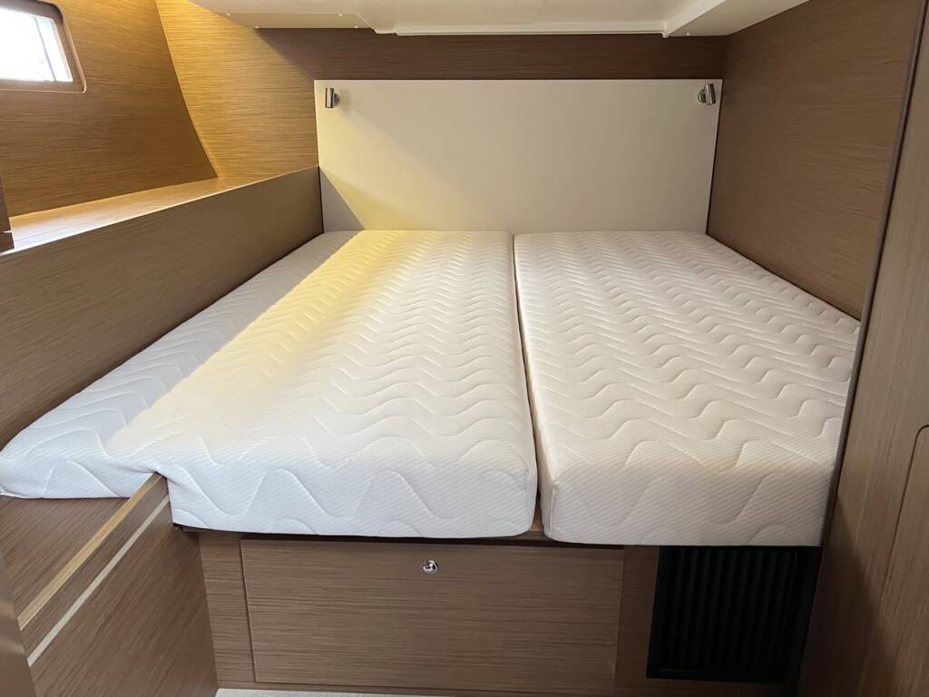 Sailing yacht Oceanis 51.1 Dune, built in 2024 is anchored in the Marina Frapa, Rogoznica, Šibenik region, Croatia. It has 5 + 1 cabins, can accommodate 10 + 2 + 1 people and has 3 + 1 toilets. Bed linen and kitchen equipment are included in the price.