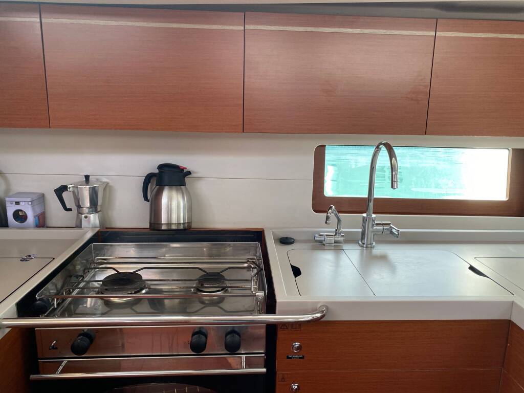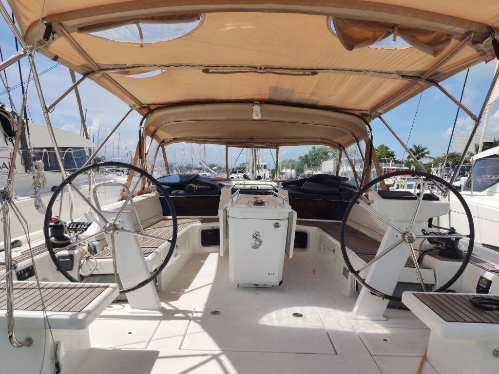 Sailing yacht Oceanis 51.1 KLEE, built in 2019 is anchored in the Grenada, Port Louis Marina, Grenada, Caribbean. It has 5 + 1 cabins, can accommodate 10 + 2 + 1 people and has 3 toilets. Bed linen and kitchen equipment are included in the price.