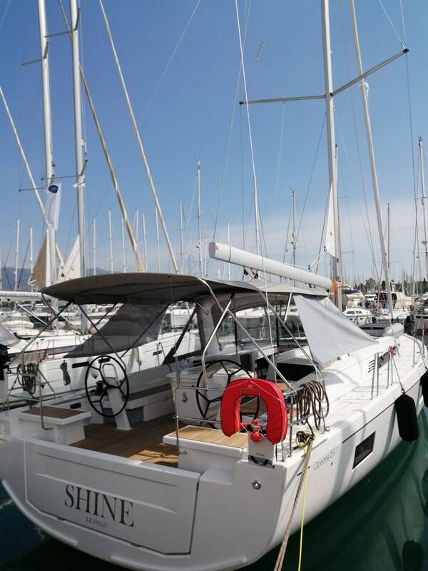 Sailing yacht Oceanis 51.1 Shine, built in 2019 is anchored in the Corfu, Gouvia Marina, Ionian Islands, Greece. It has 6 cabins, can accommodate 11 + 1 people and has 4 toilets. Bed linen and kitchen equipment are included in the price.