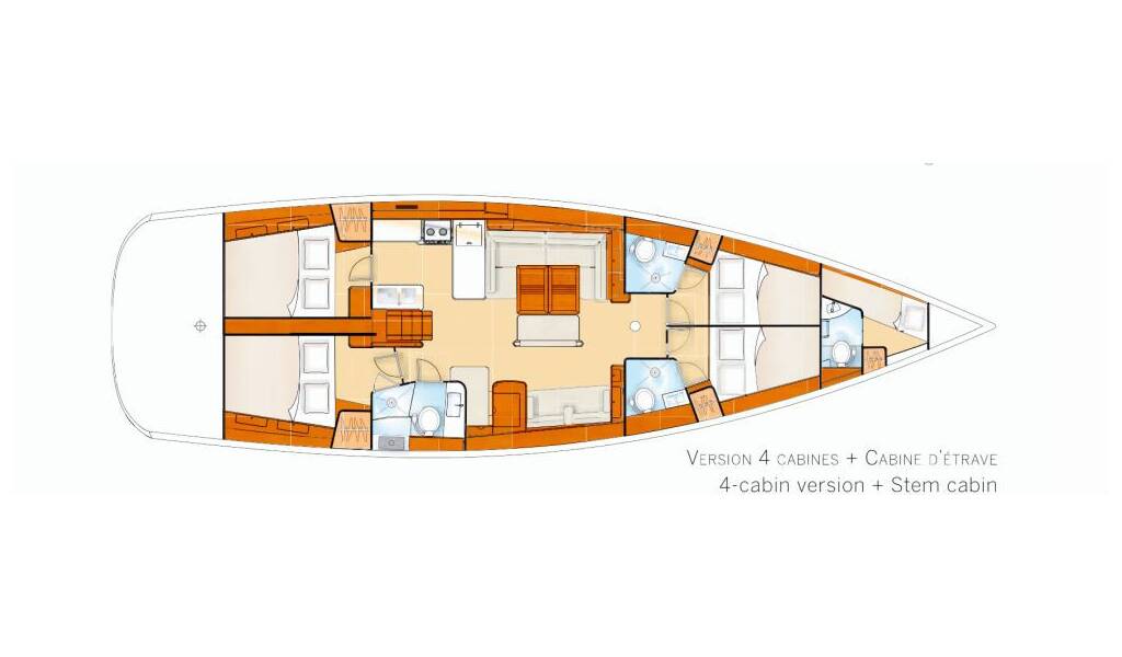 Sailing yacht Oceanis 54 Captain John, built in 2009 is anchored in the Yacht Club Marina Salamina, Athens area, Athens area/Saronic/Peloponese, Greece. It has 4 + 1 cabins, can accommodate 8 + 1 people and has 3 + 1 toilets. Bed linen and kitchen equipment are included in the price.