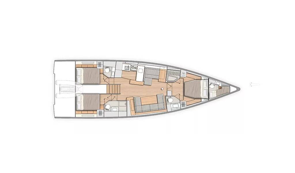 Sailing yacht Oceanis 54 Eve One, built in 2024 is anchored in the Trogir, Yachtclub Seget (Marina Baotić), Split region, Croatia. It has 3 + 1 cabins, can accommodate 6 + 1 people and has 3 + 1 toilets. Bed linen and kitchen equipment are included in the price.