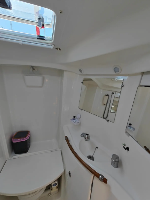 Sailing yacht Oceanis Clipper 393 Crete, built in 2002 is anchored in the Athens, Marina Delta Kallithea, Athens area/Saronic/Peloponese, Greece. It has 3 cabins, can accommodate 6 + 2 people and has 2 toilets. Bed linen and kitchen equipment are included in the price.