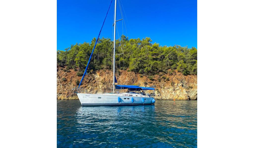 Sailing yacht Oceanis Clipper 423 Derin, built in 2007 is anchored in the Fethiye, Ece Saray Marina Resort, Aegean, Turkey. It has 3 cabins, can accommodate 6 people and has 2 toilets. Bed linen and kitchen equipment are included in the price.