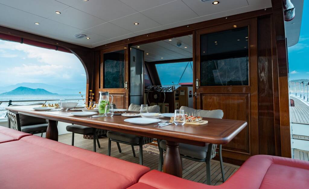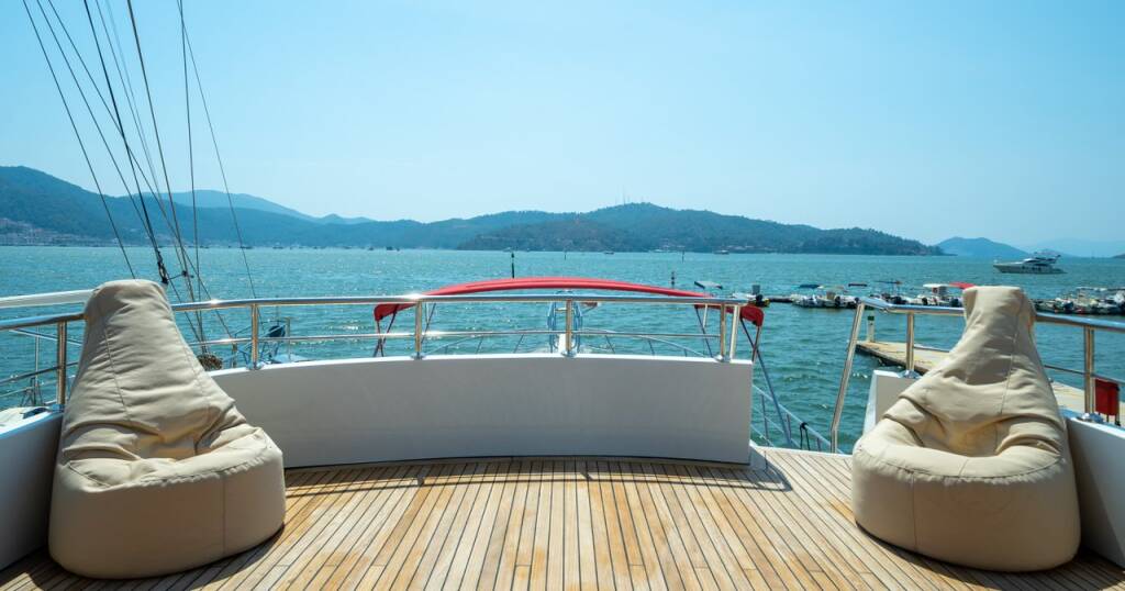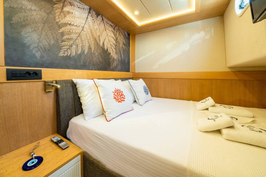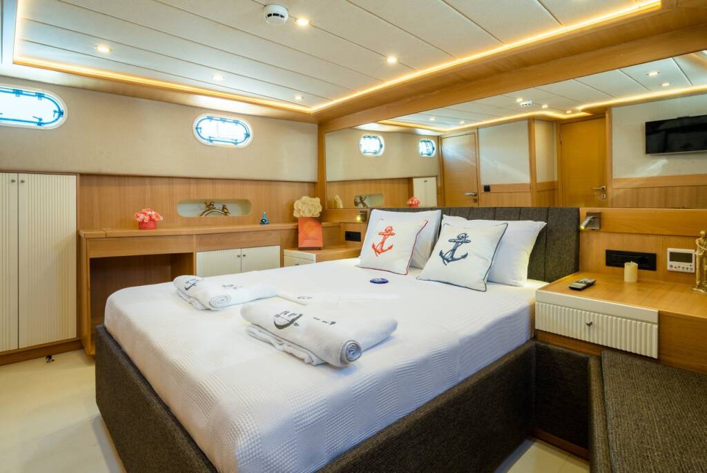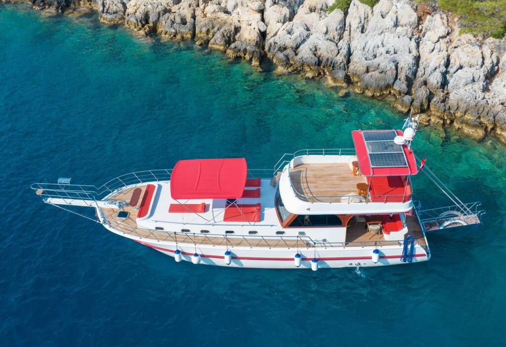 Motor yacht OK AY Gulet Ok Ay, built in 2023 is anchored in the Fethiye, Ece Saray Marina Resort, Aegean, Turkey. It has 3 cabins, can accommodate 6 people and has 3 toilets. Bed linen and kitchen equipment are included in the price.