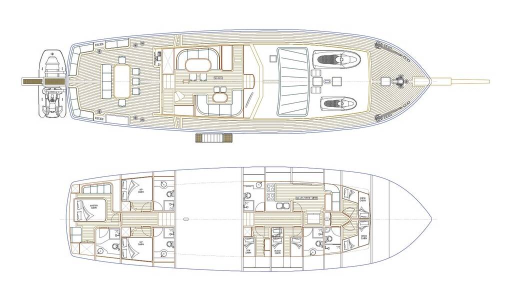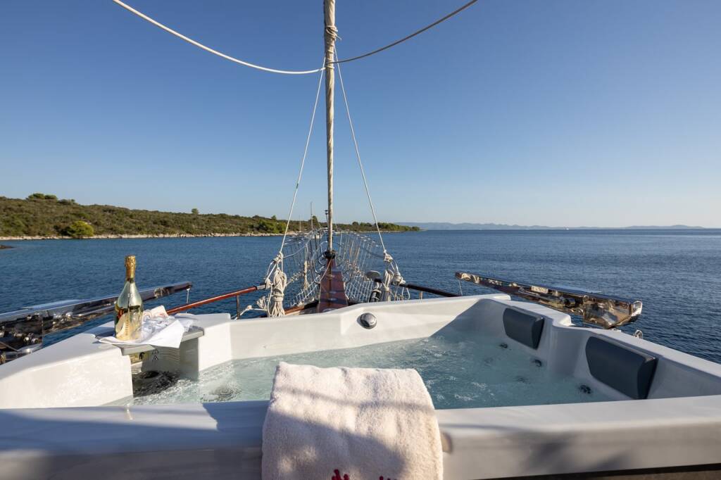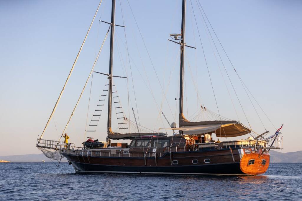 Gulet Pacha Pacha, built in 2000 is anchored in the ACI Marina Split, Split region, Croatia. It has 4 cabins, can accommodate 9 people and has 4 toilets. Bed linen and kitchen equipment are included in the price.