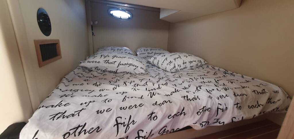 Motor boat Pearlsea 31 Hard Top Aero, built in 2023 is anchored in the Marina Baska Voda, Split region, Croatia. It has 2 cabins, can accommodate 4 + 2 people and has 1 toilets. Bed linen and kitchen equipment are included in the price.
