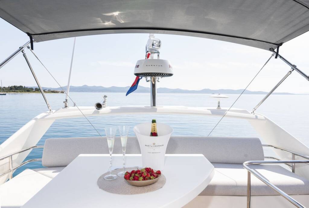 Motor yacht Prestige 460 Adudu 2, built in 2019 is anchored in the Dubrovnik, Komolac, ACI Marina Dubrovnik, Dubrovnik region, Croatia. It has 3 + 1 cabins, can accommodate 6 + 1 people and has 2 toilets. Bed linen and kitchen equipment are included in the price.