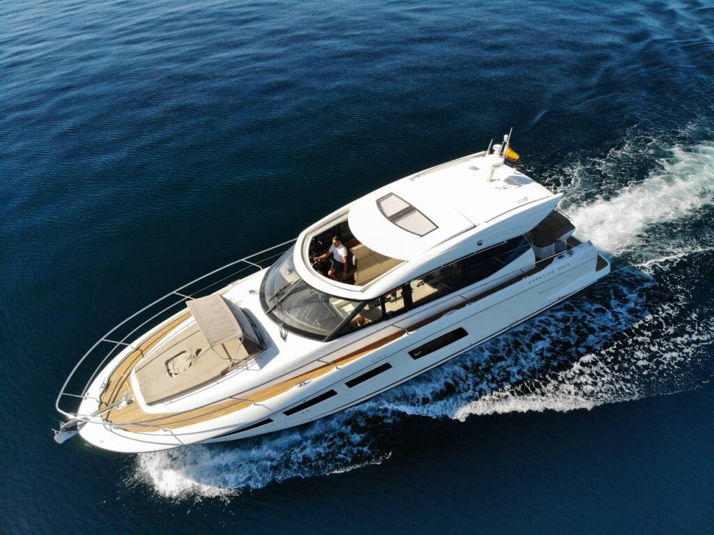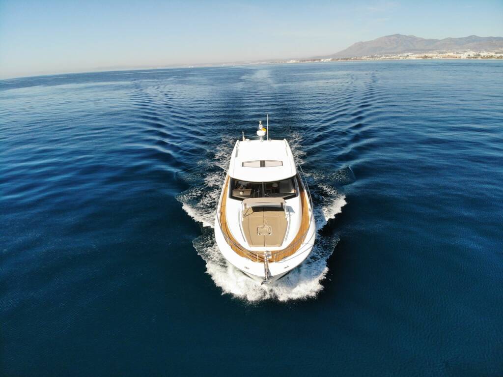Motor yacht Prestige 500S La Brisa, built in 2012 is anchored in the Puerto Banús, Andalusia, Spain. It has 3 cabins, can accommodate 6 people and has 2 toilets. Bed linen and kitchen equipment are included in the price.