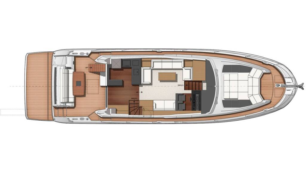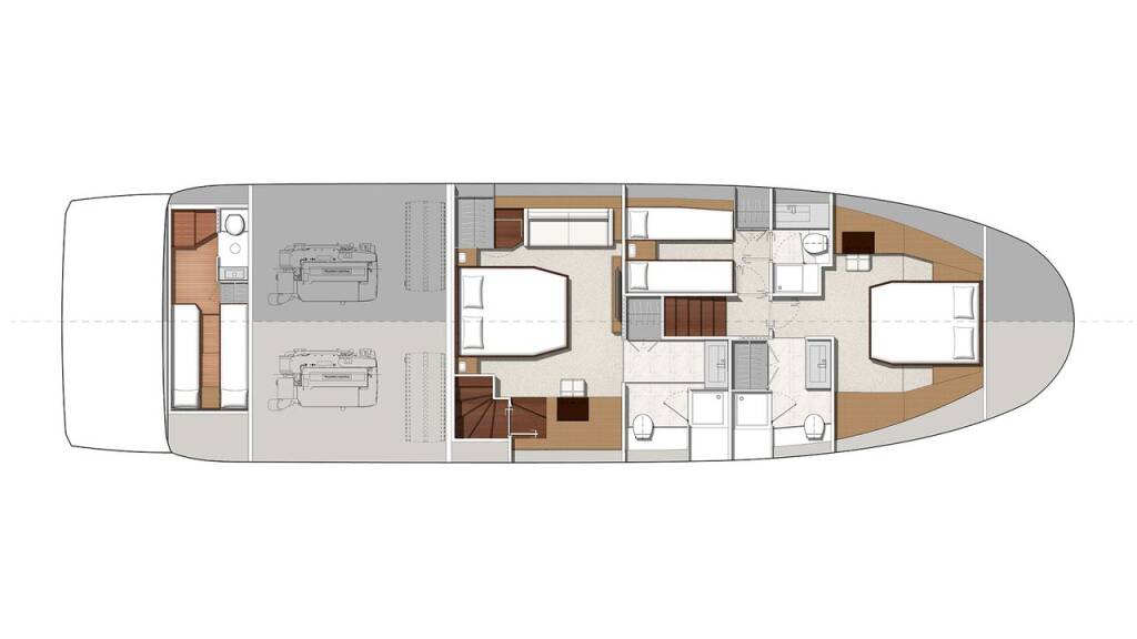 Motor yacht Prestige 630S Simul, built in 2018 is anchored in the Trogir, Split region, Croatia. It has 3 + 1 cabins, can accommodate 6 + 2 people and has 3 + 1 toilets. Bed linen and kitchen equipment are included in the price.