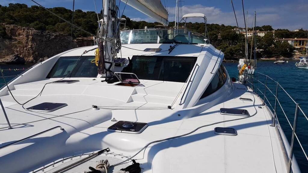 Catamaran Privilege 615 Audaz, built in 2012 is anchored in the Palma de Mallorca, La Lonja, Balearic Islands, Spain. It has 4 + 2 cabins, can accommodate 8 + 2 people and has 4 + 1 toilets. Bed linen and kitchen equipment are included in the price.