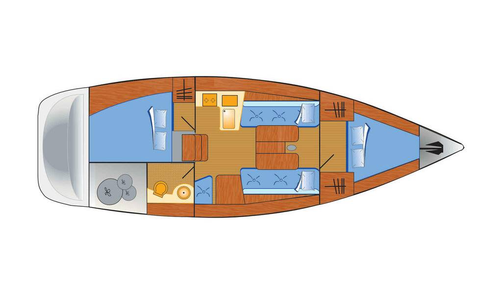 Sailing yacht Salona 35 Piccola Strega, built in 2013 is anchored in the Heiligenhafen, Schleswig-Holstein, Germany. It has 2 cabins, can accommodate 4 people and has 1 toilets. Bed linen and kitchen equipment are included in the price.