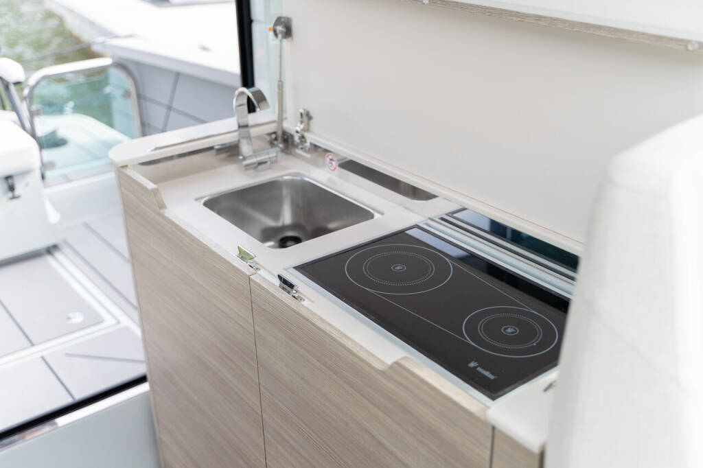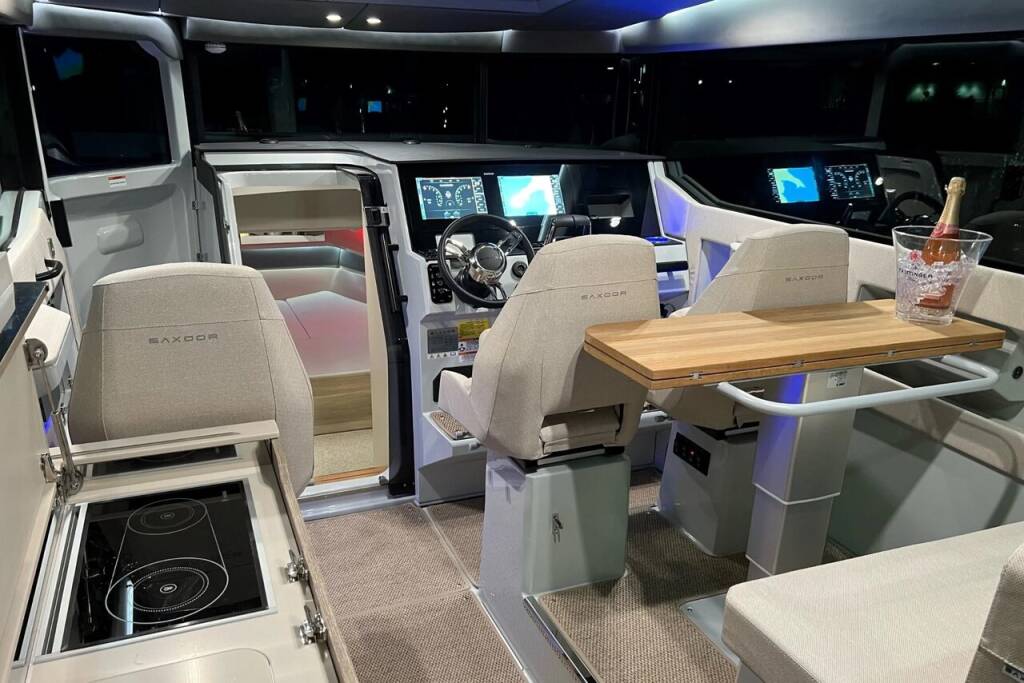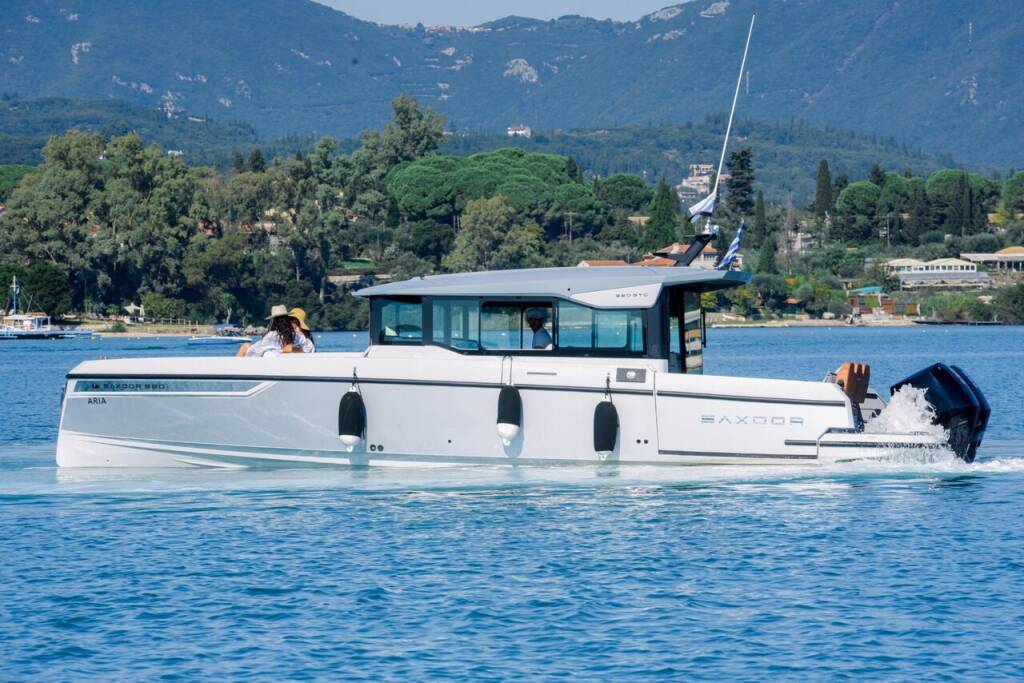 Motor boat Saxdor 320 GTC Aria, built in 2022 is anchored in the Corfu, Gouvia Marina, Ionian Islands, Greece. It has 1 cabins, can accommodate 2 + 2 people and has 1 toilets. Bed linen and kitchen equipment are included in the price.