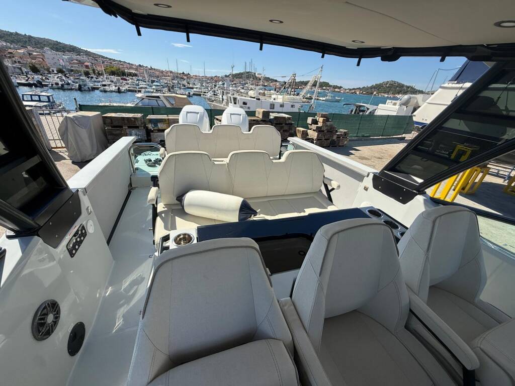 Motor boat Saxdor 320 GTO No Name, built in 2023 is anchored in the Sukosan, D-Marin Dalmacija Marina, Zadar region, Croatia. It has 1 cabins, can accommodate 2 people and has 1 toilets. Bed linen and kitchen equipment are included in the price.