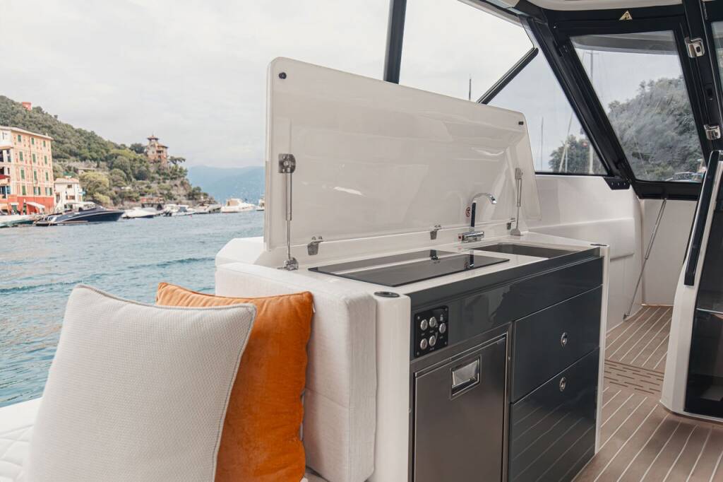 Motor boat Saxdor 400 GTO Tai 77, built in 2025 is anchored in the Sukosan, D-Marin Dalmacija Marina, Zadar region, Croatia. It has 2 cabins, can accommodate 4 people and has 1 toilets. Bed linen and kitchen equipment are included in the price.