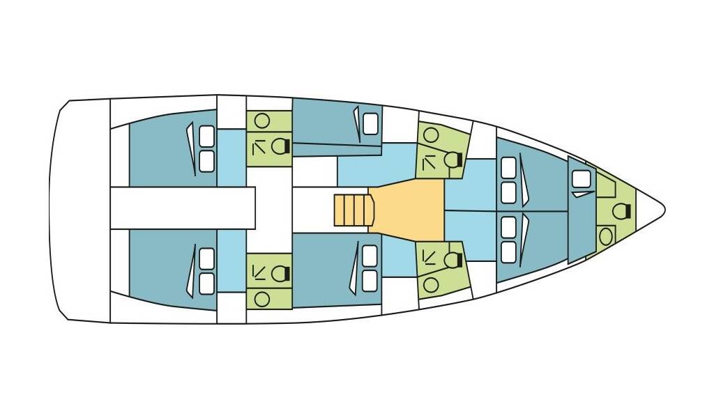 skipper and a hostess/cook are on board, 1 double cabin and 1 forepeak cabin will be