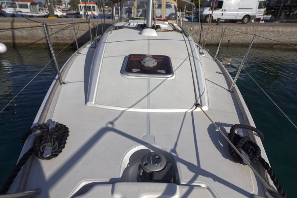 Sailing yacht Sun Odyssey 36i Candy, built in 2010 is anchored in the Megara, Port Pachi, Athens area/Saronic/Peloponese, Greece. It has 3 cabins, can accommodate 6 people and has 1 toilets. Bed linen and kitchen equipment are included in the price.