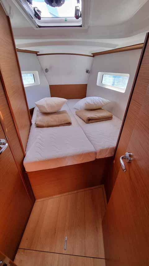 Sailing yacht Sun Odyssey 380 Bella Mia, built in 2023 is anchored in the Golfo Aranci Marina Dell’Isola, Sardinia, Italy. It has 3 cabins, can accommodate 6 + 1 people and has 2 toilets. Bed linen and kitchen equipment are included in the price.